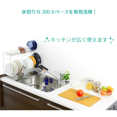 お料理がスムーズ ・フライパン・大皿の水切りもOK! ・水を中央へ集めてシンクへ促すトレー&カトラリーケース付き ・総耐荷重30kgの安心設計