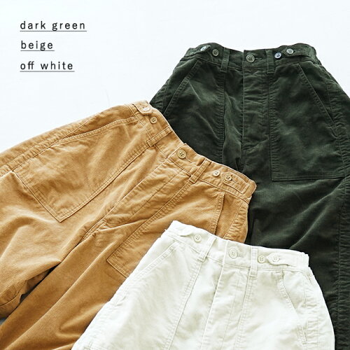 サイズ ウエスト ヒップ 股上 ワタリ 股下 裾幅 重さ 00(レディースS〜M) 58cm〜74cm 118cm 36cm 37cm 62cm 23cm 566g 0(レディースM〜L) 66cm〜86cm 120cm 36cm 40cm 62cm 24cm 600g 1(メンズS〜M) 68cm〜88cm 122cm 37cm 40cm 64cm 25cm 626g 2(メンズM〜L) 72cm〜90cm 126cm 37cm 41cm 65cm 26cm 638g ⇒商品の詳しい採寸方法について BRAND その他のORDINARY FITS(オーディナリーフィッツ)はこちら COUNTRY Made in Japan SIZE 00(レディースS〜M)、0(レディースM〜L)、1(メンズS〜M)、2(メンズM〜L) COLOR off white(オフホワイト)、beige(ベージュ/ライントブラウン)、dark green(ダークグリーン) FABRIC 綿100% ATTENTION こちらの商品はデザインの特性上、裾直しは致しかねます。