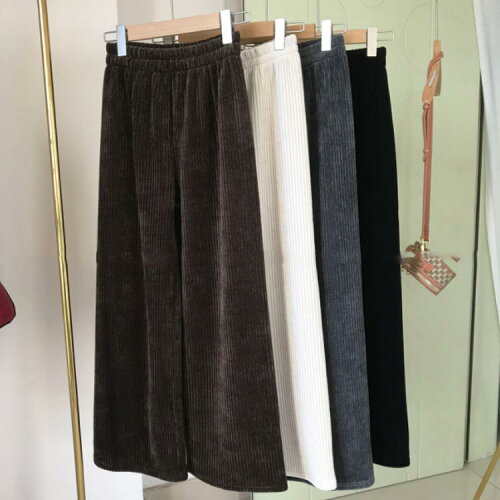 コーデュロイ ワイドパンツ レディース ロングパンツ ガウチョパンツ イージーパンツ ウェストゴム スカンツ ストレート 秋冬 通勤 お出かけ