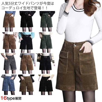 ワイドパンツ コーデュロイ レディース 5分丈 半ズボン ボトムス カジュアル ハイウエスト ゆったり 美脚 着痩せ 秋服 冬物 大きいサイズ 送料無料